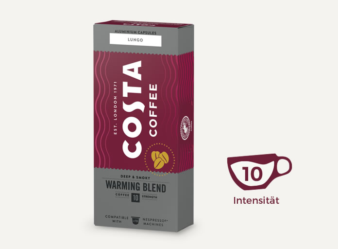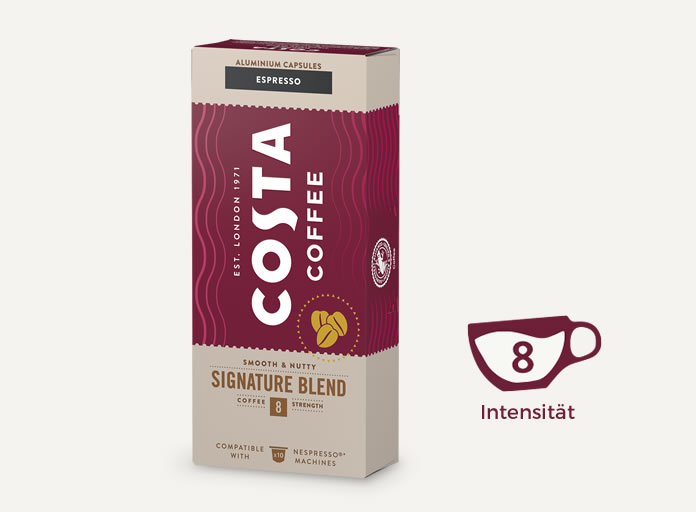 Wir bei Costa wissen was guter Kaffee ist. Du möchtest einen Beweis? Kaffeetrinker:innen entscheiden sich seit 1971 für unseren Signature Blend. Das Resultat echter Leidenschaft. Wir haben 112 Anläufe gebraucht, um unseren Signature Blend zu perfektionieren, aber das war es wert. Dieser einzigartige Blend ist langsam geröstet für besonders sanften und nussigen Geschmack und reiches Aroma, die perfekte Tasse Kaffee für jede Gelegenheit.